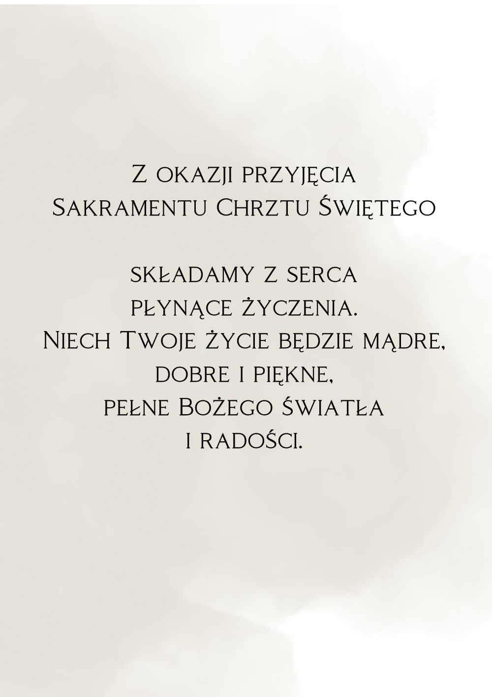 • karta okolicznościowa składana z życzeniami w środku o wymiarach 12 x 17 cm (po złożeniu)