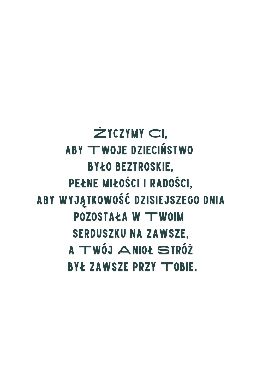 • karta okolicznościowa składana z życzeniami w środku o wymiarach 12 x 17 cm (po złożeniu)
