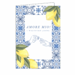 • karta okolicznościowa składana z życzeniami w środku o wymiarach 12 x 17 cm (po złożeniu)