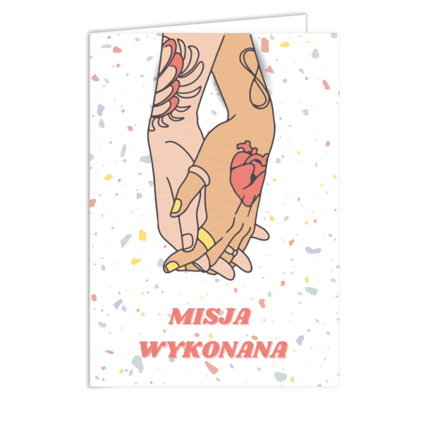 • karta okolicznościowa składana z życzeniami w środku o wymiarach 12 x 17 cm (po złożeniu)